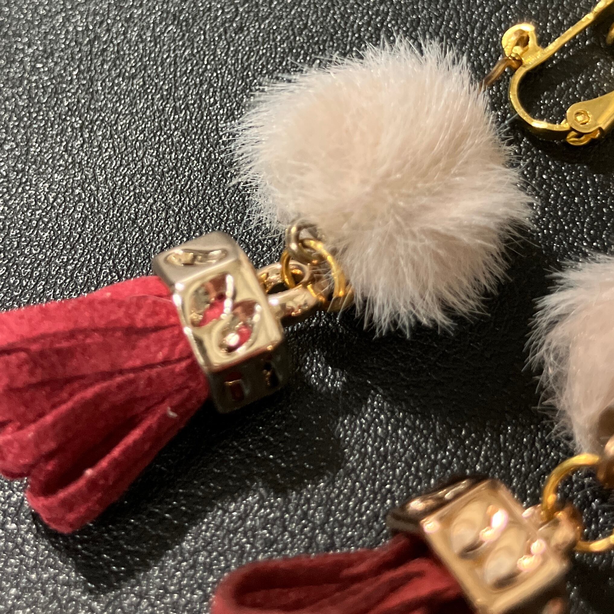 ふわふわのファーと、落ち着いたカラーのタッセルを組み合わせた、秋冬にぴったりのイヤリング。.✽.。