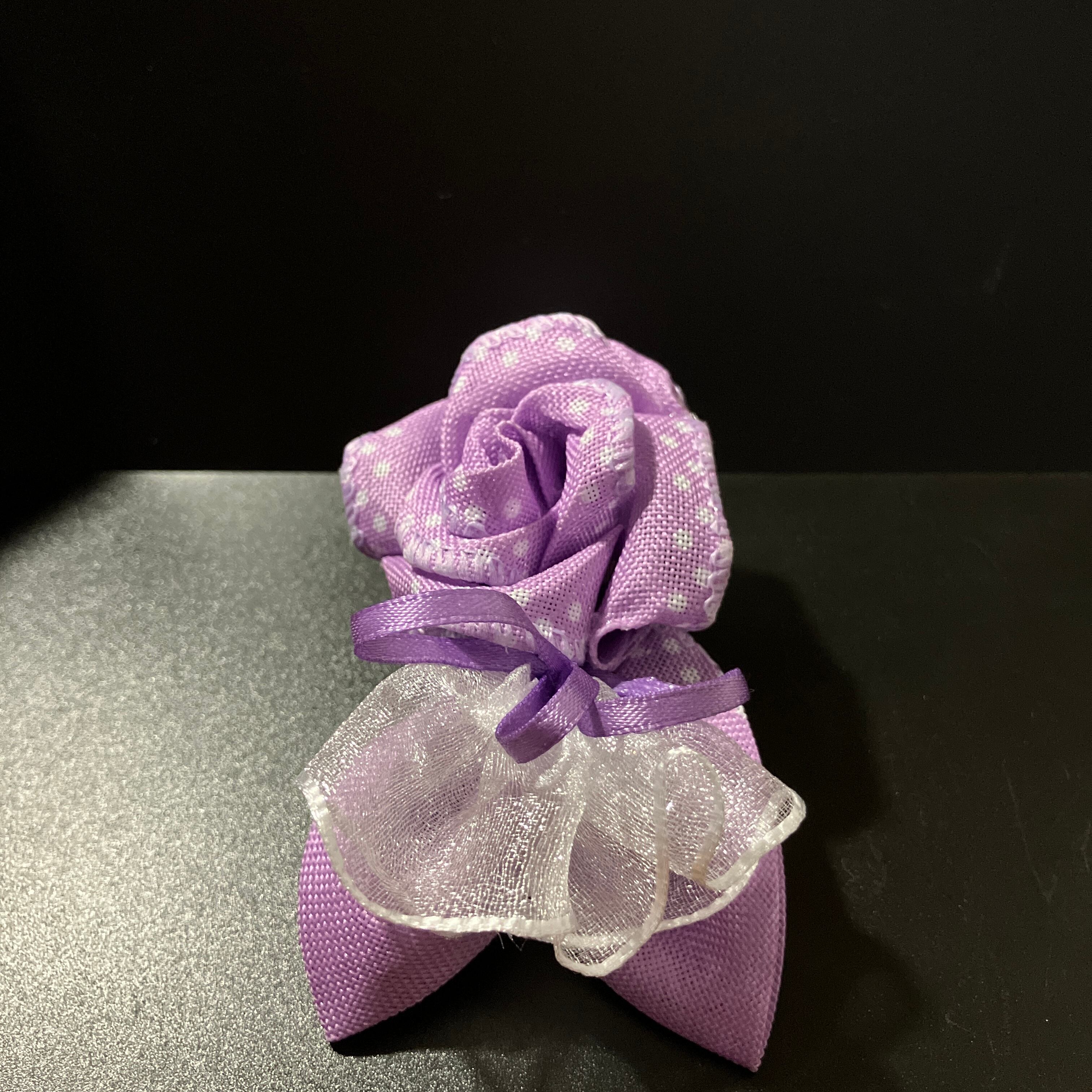 ■上品なラベンダーカラーのリボンフラワーに、白いチュールと同色リボンを添えました。.✽.。