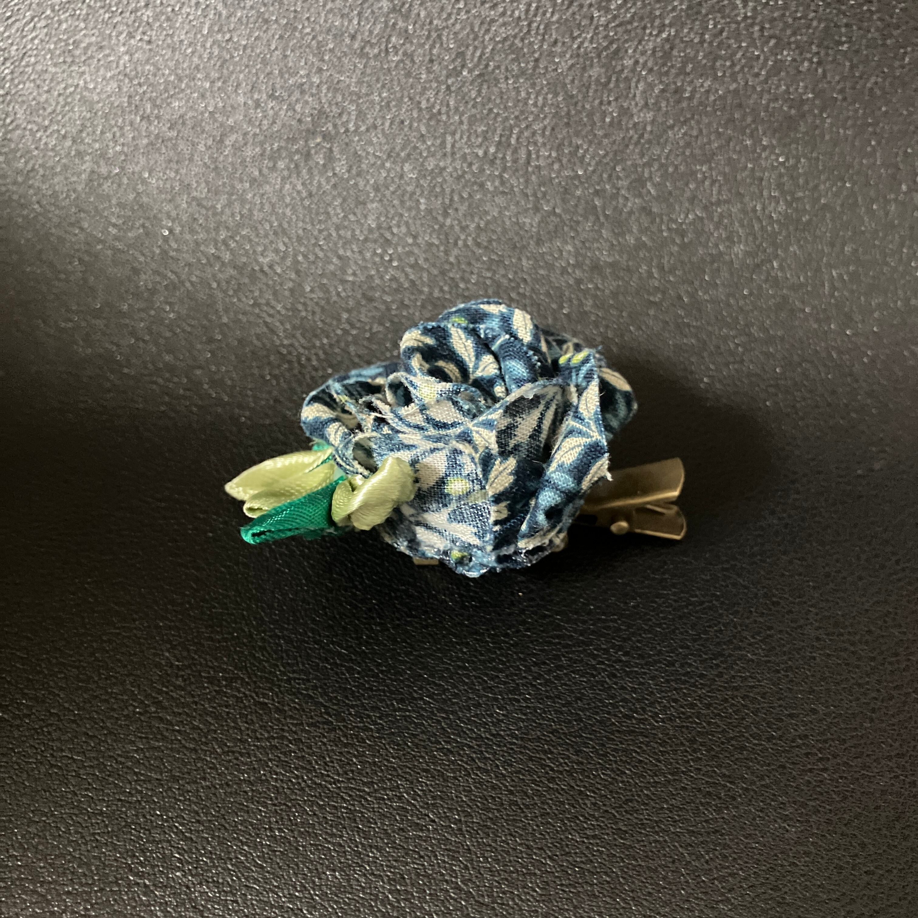 【2wayプチコサージュ】リボンフラワー藍花(あいばな):クリップ&ブローチ