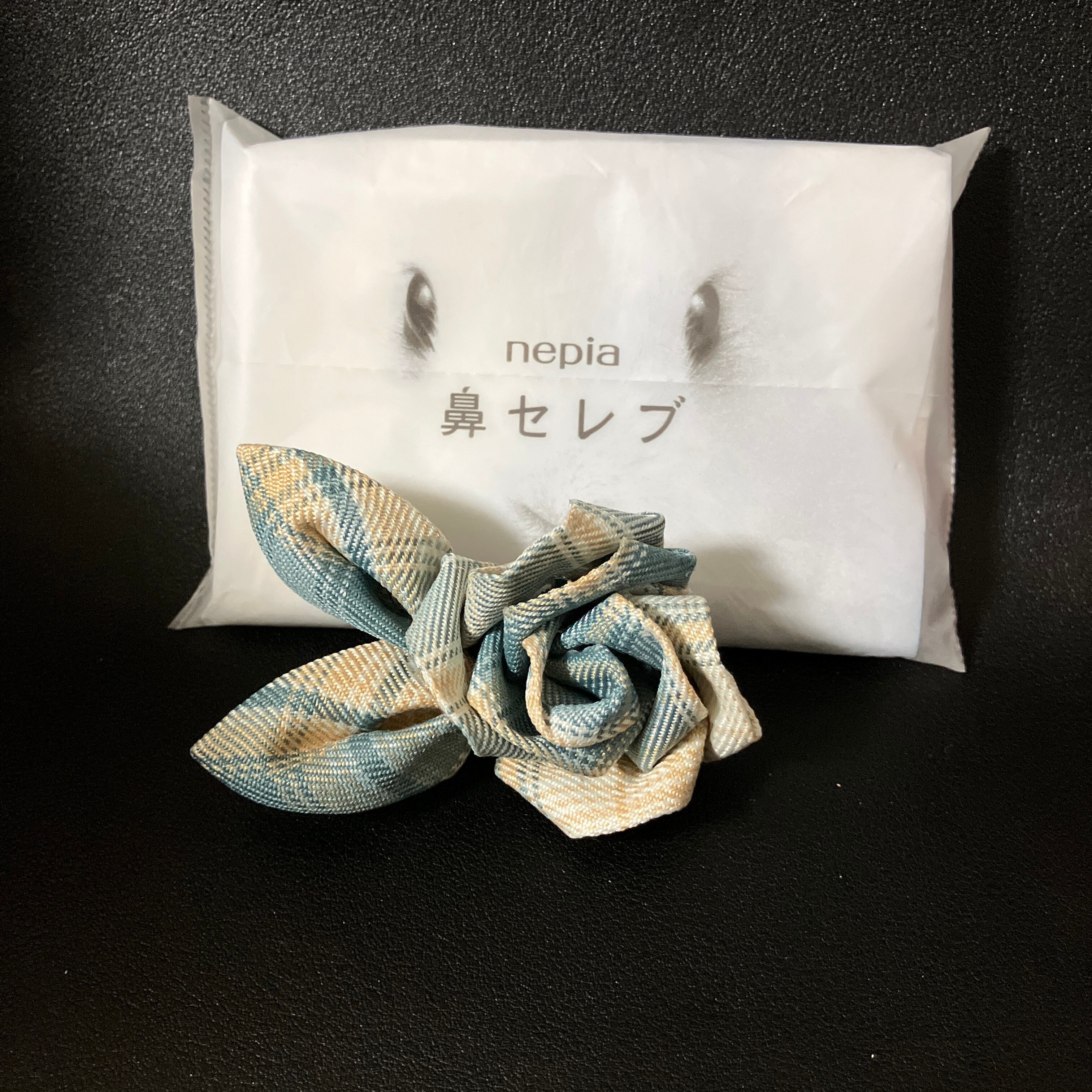■伝統的なチェック柄の美しさを活かした、リボンフラワーのプチコサージュです。