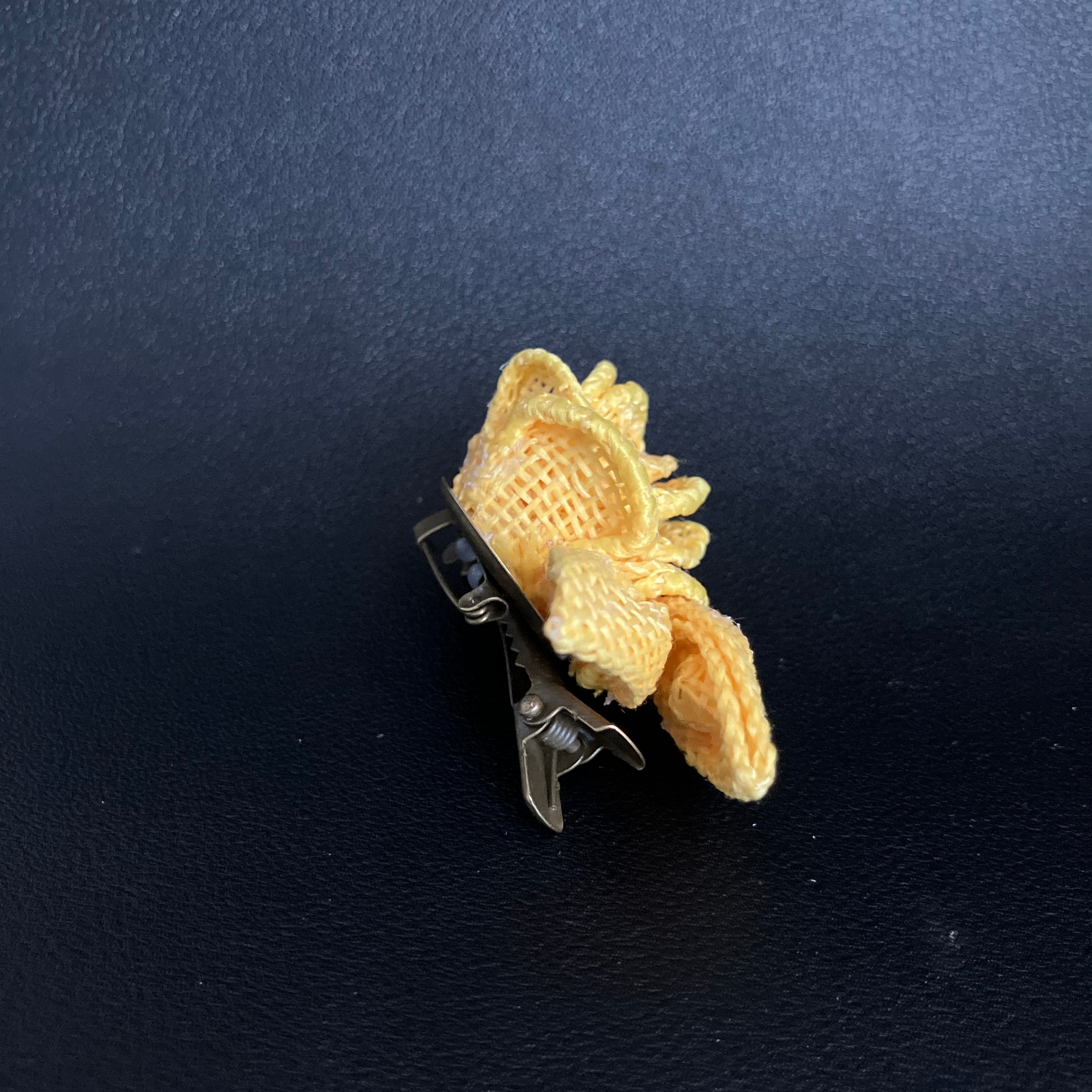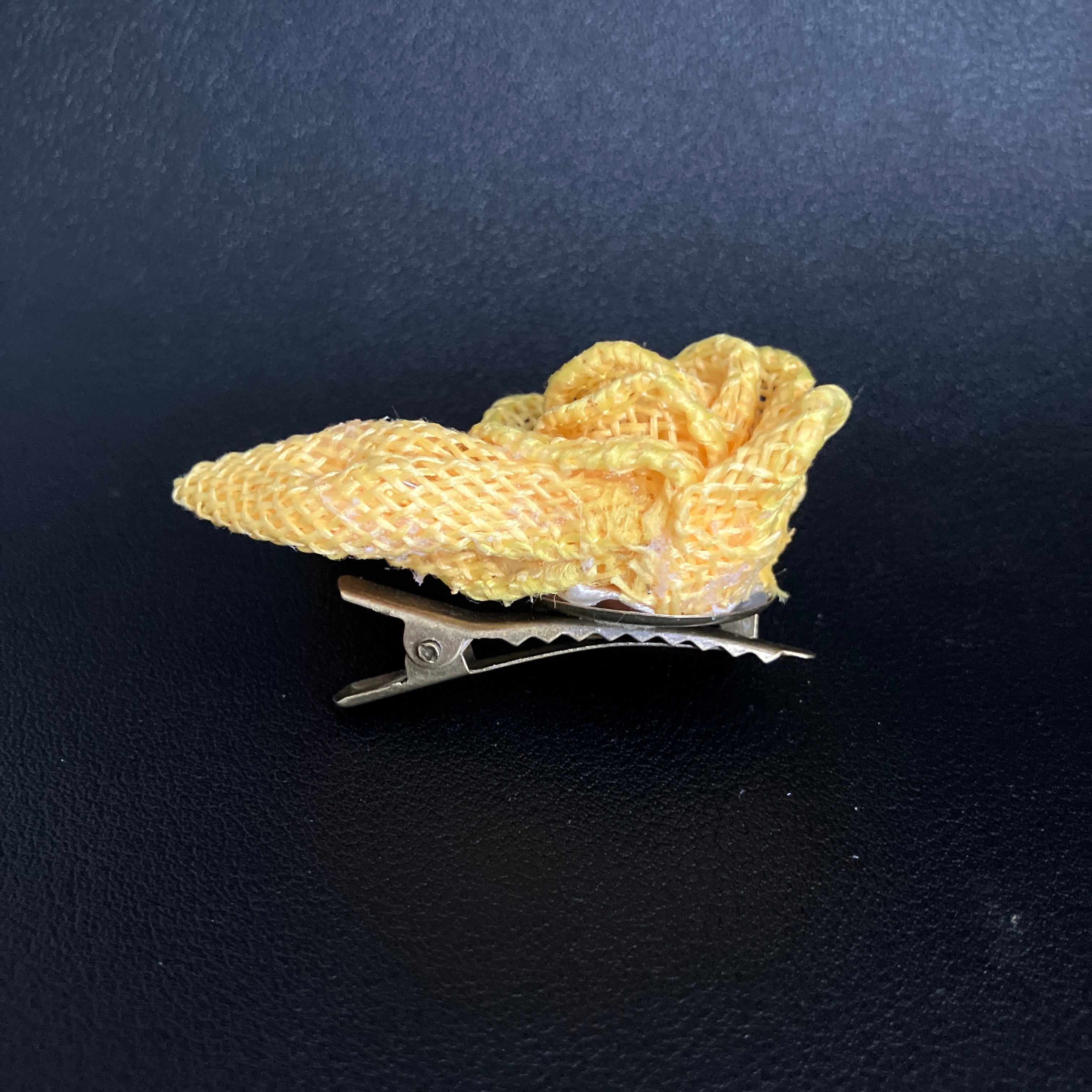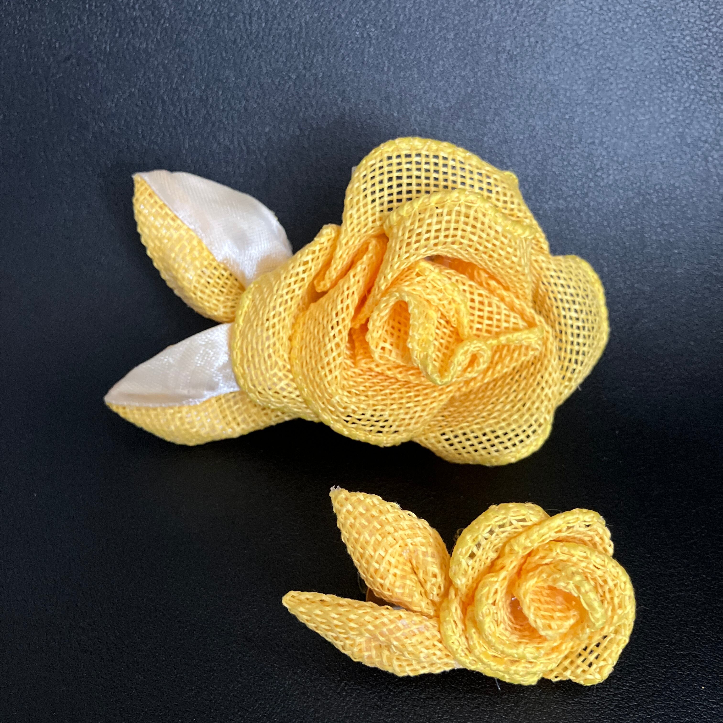 【2wayプチプチコサージュ】リボンフラワー「ラフィア・イエロー」クリップ&ブローチ
