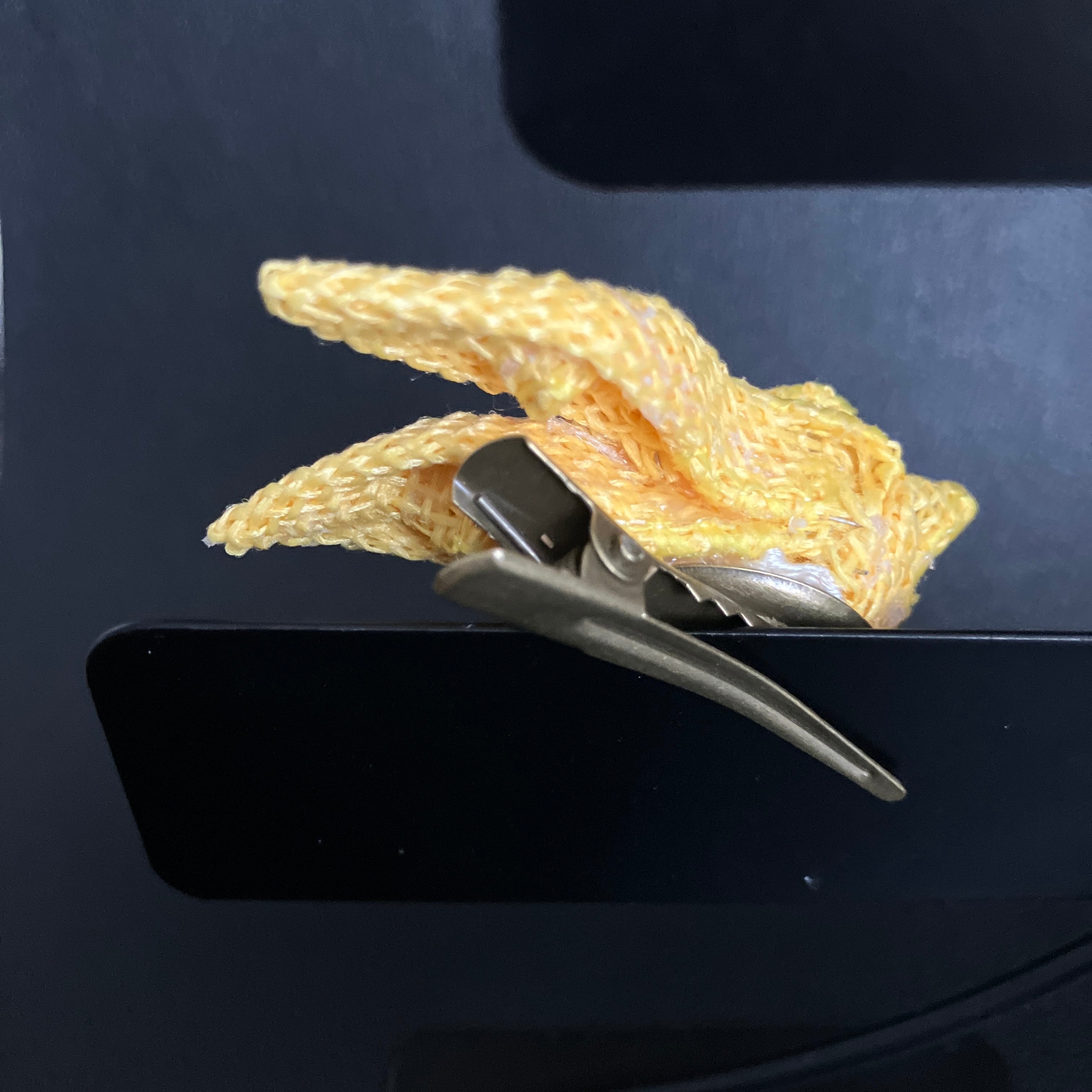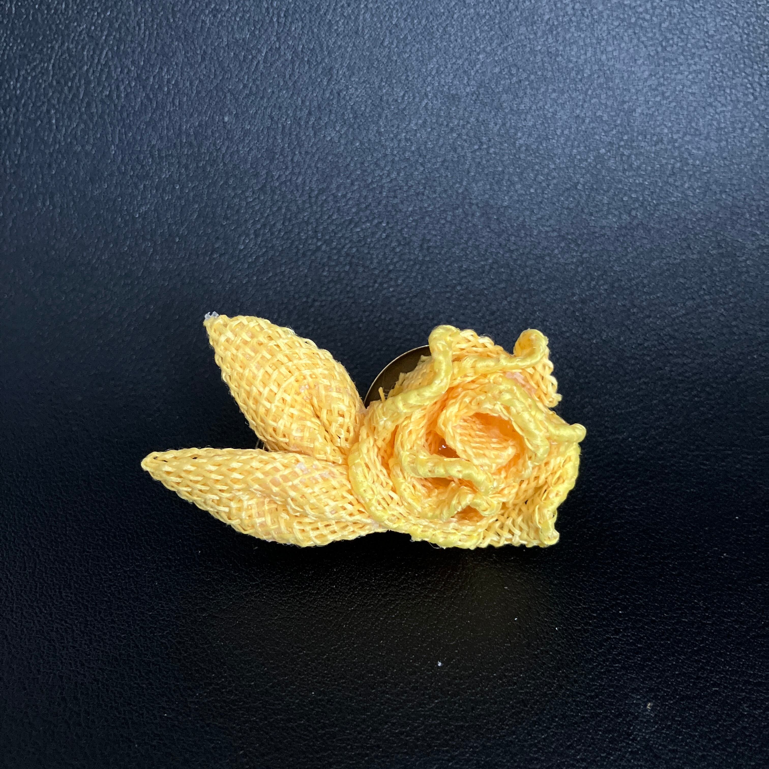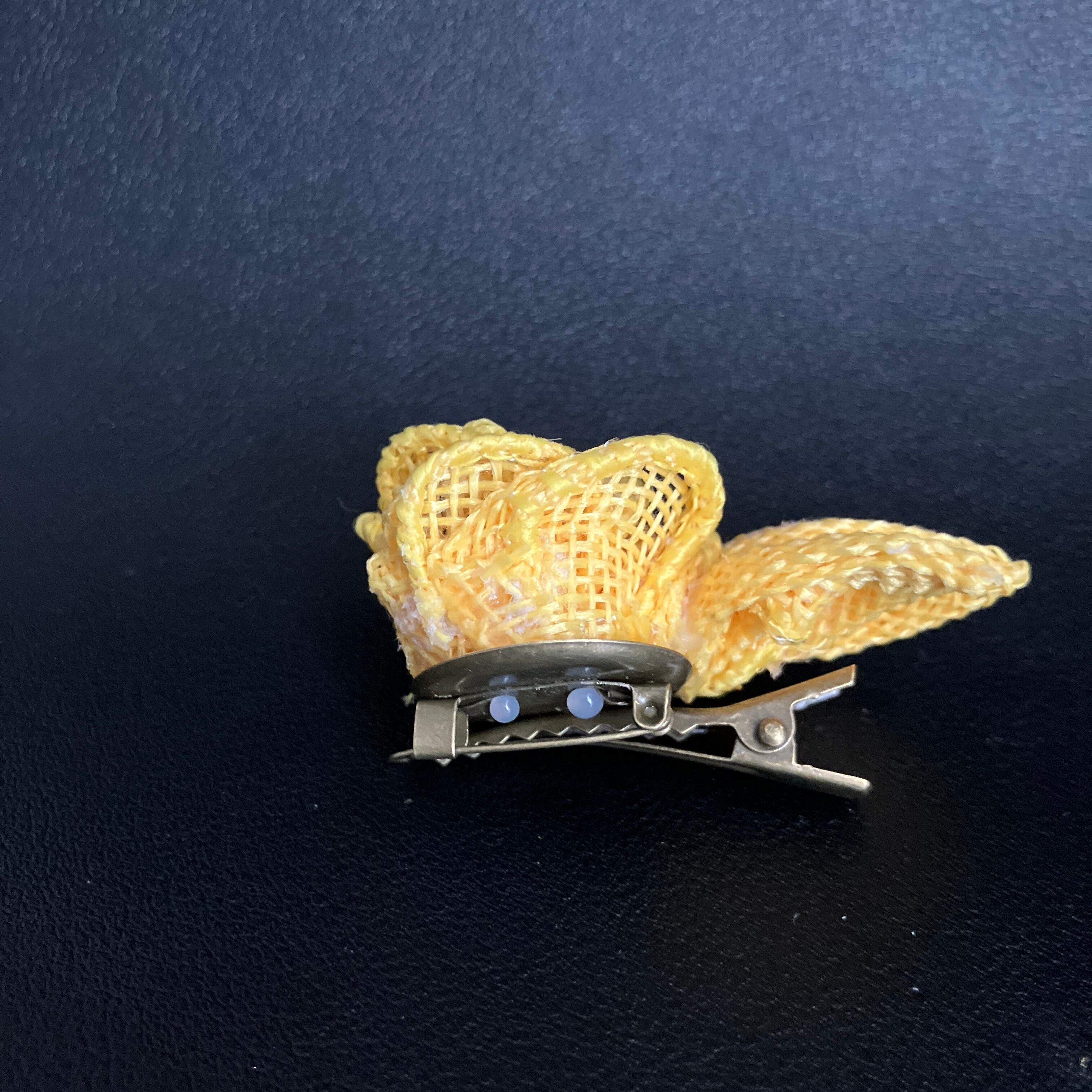 【2wayプチプチコサージュ】リボンフラワー「ラフィア・イエロー」クリップ&ブローチ