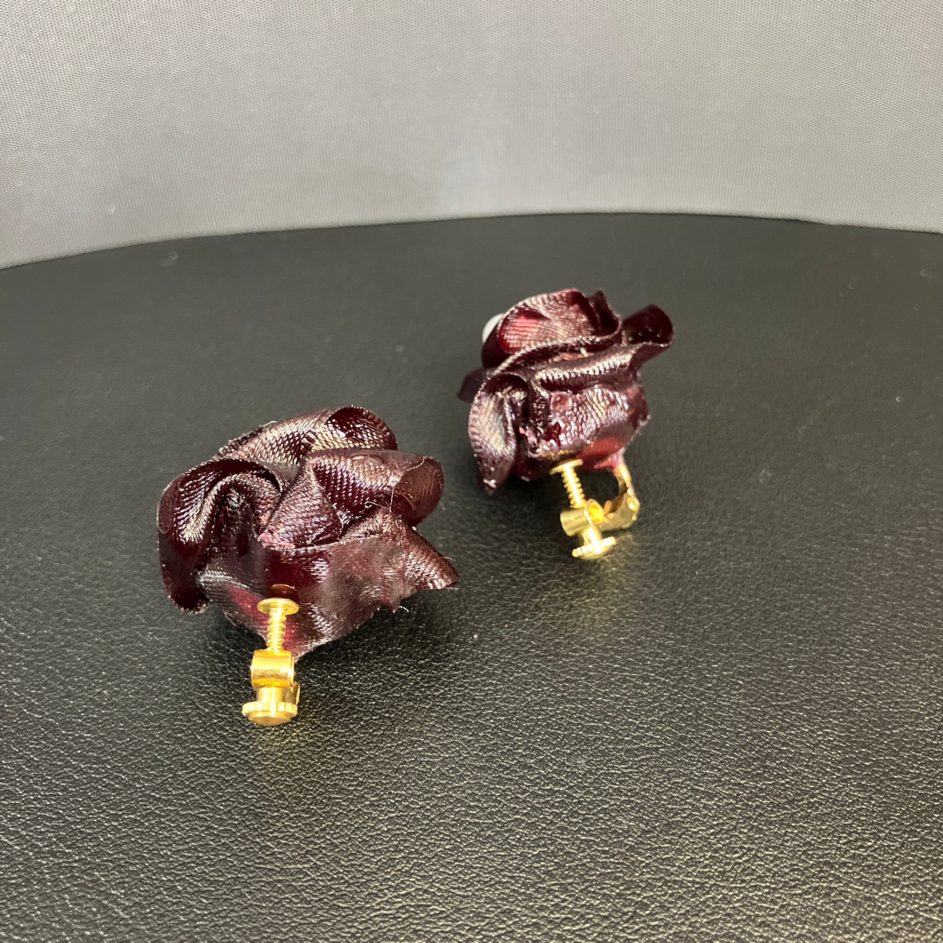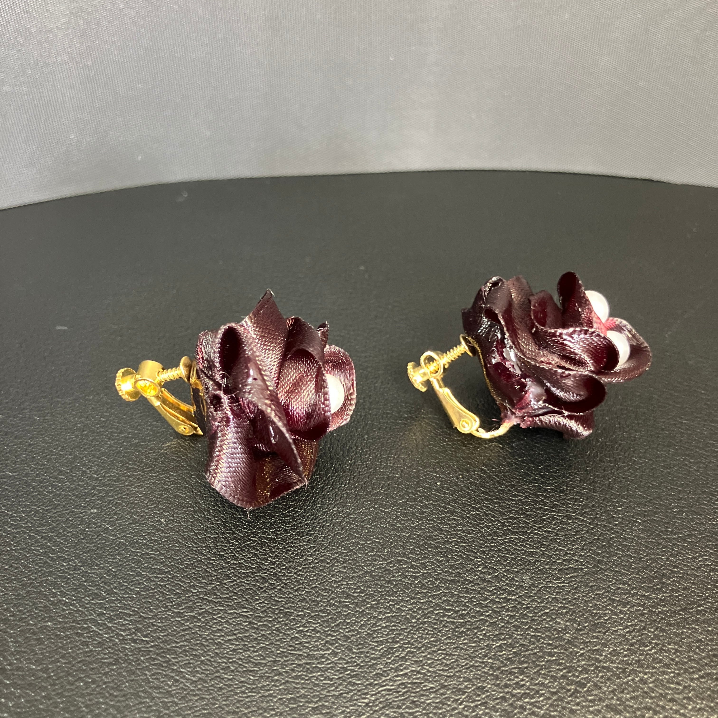 【2wayクリップ&ブローチ・イヤリング】ノーブル・ローズ・アンサンブル:バーガンディ