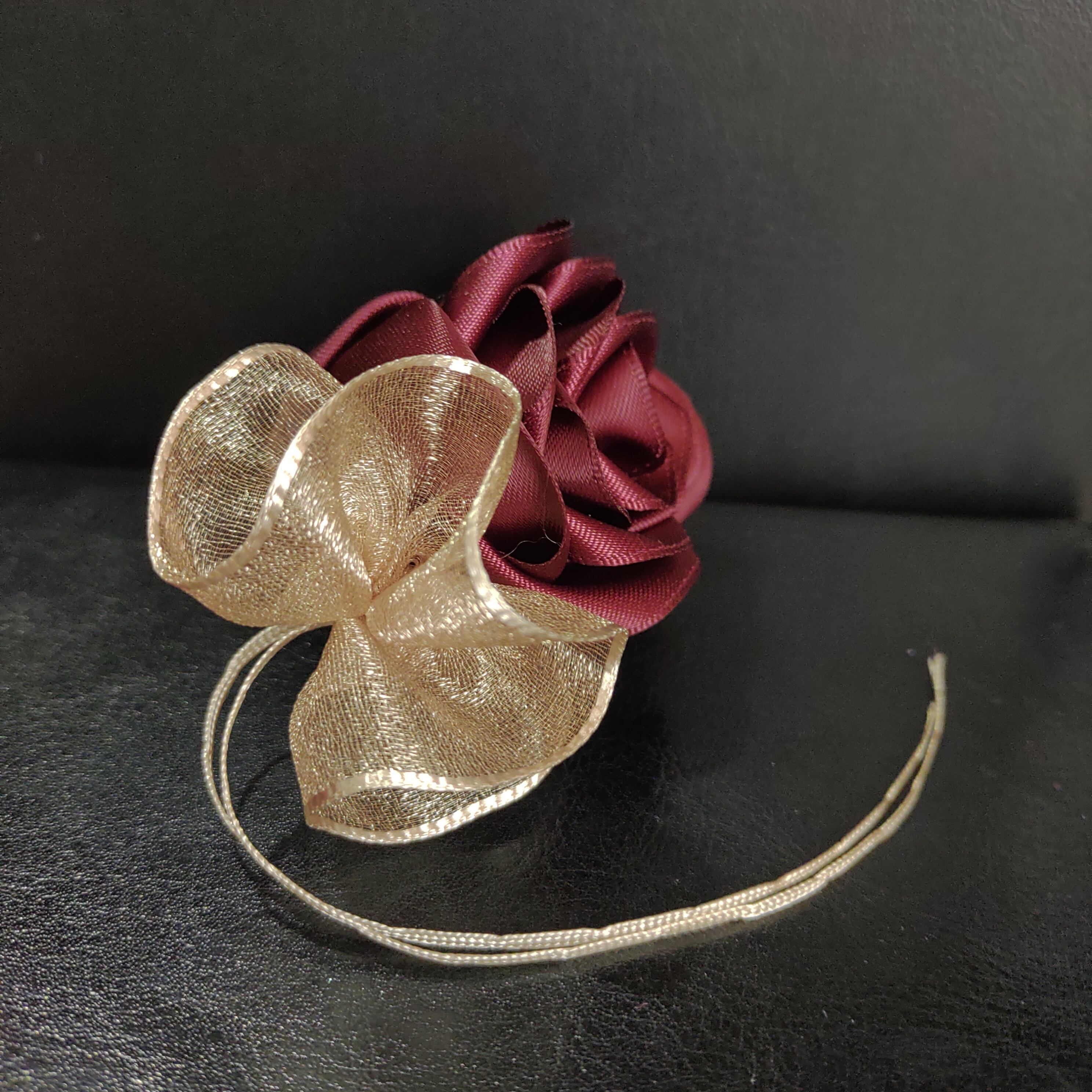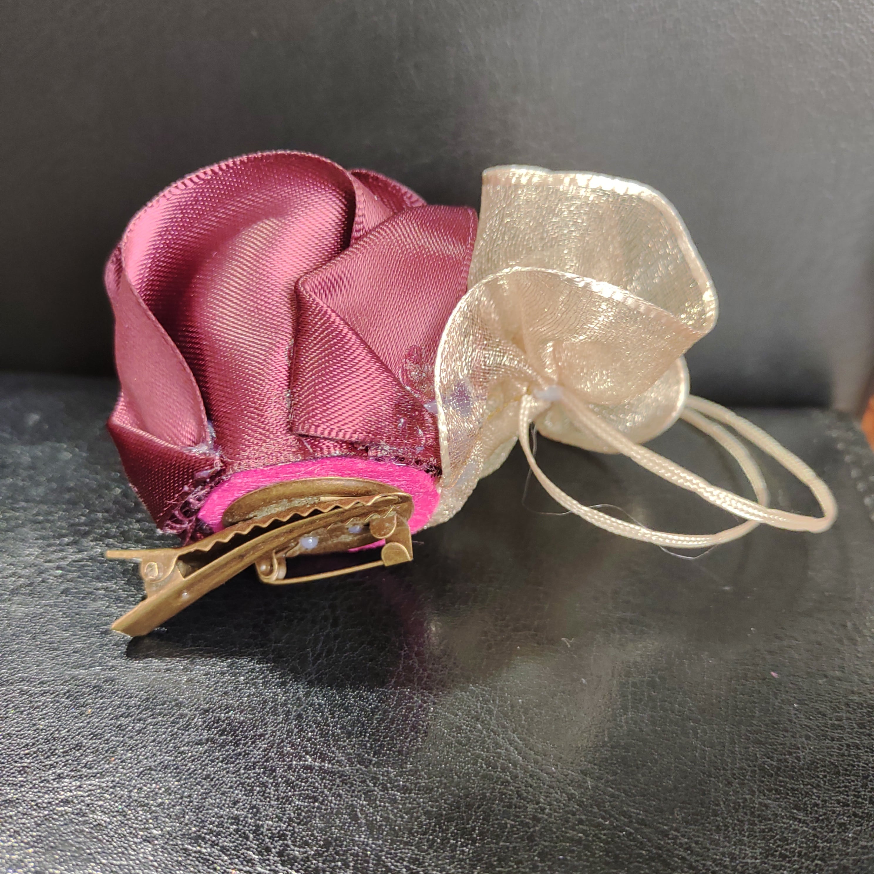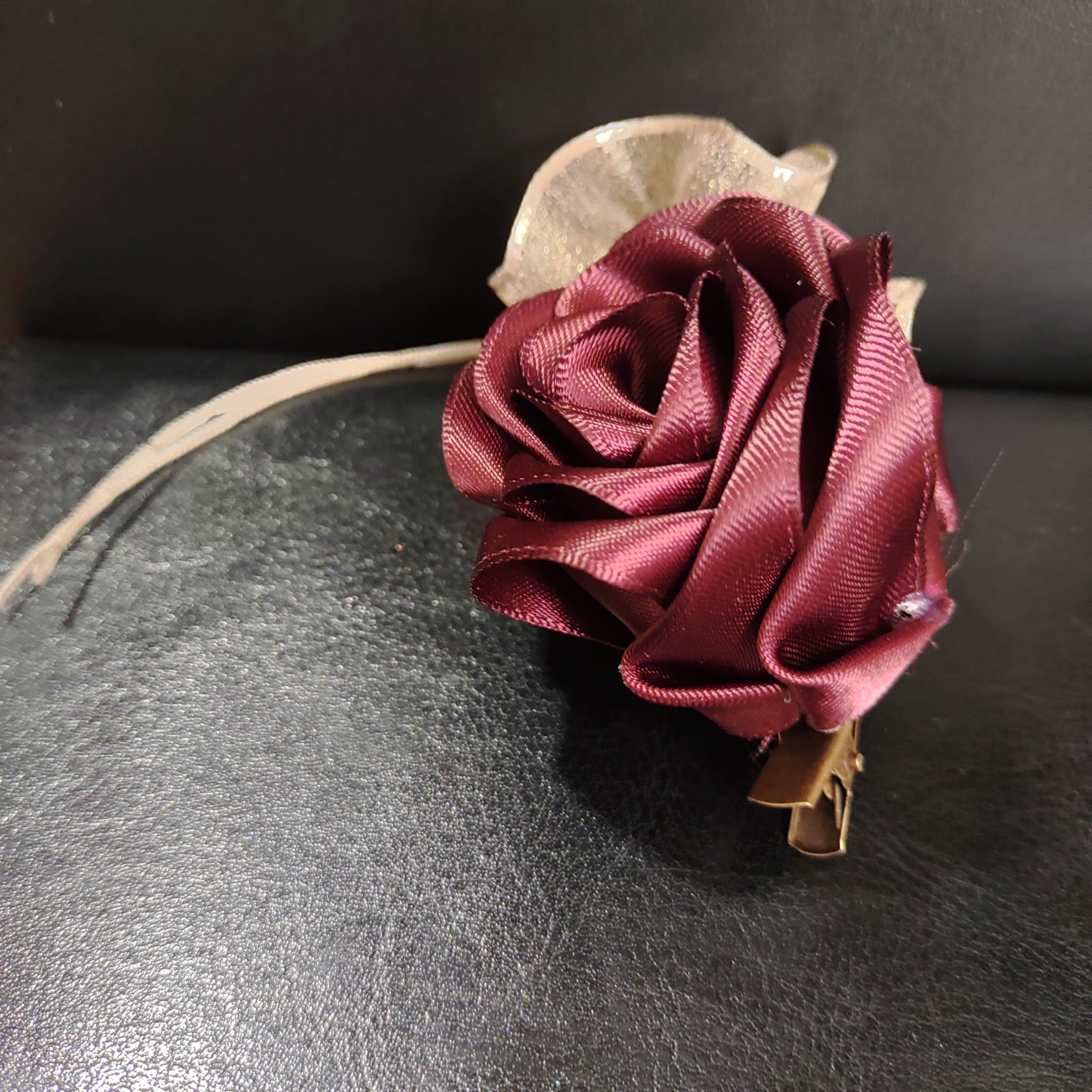 ☆再販【ミディコサージュ】バーガンディローズとシフォンリボン:クリップ&ブローチ