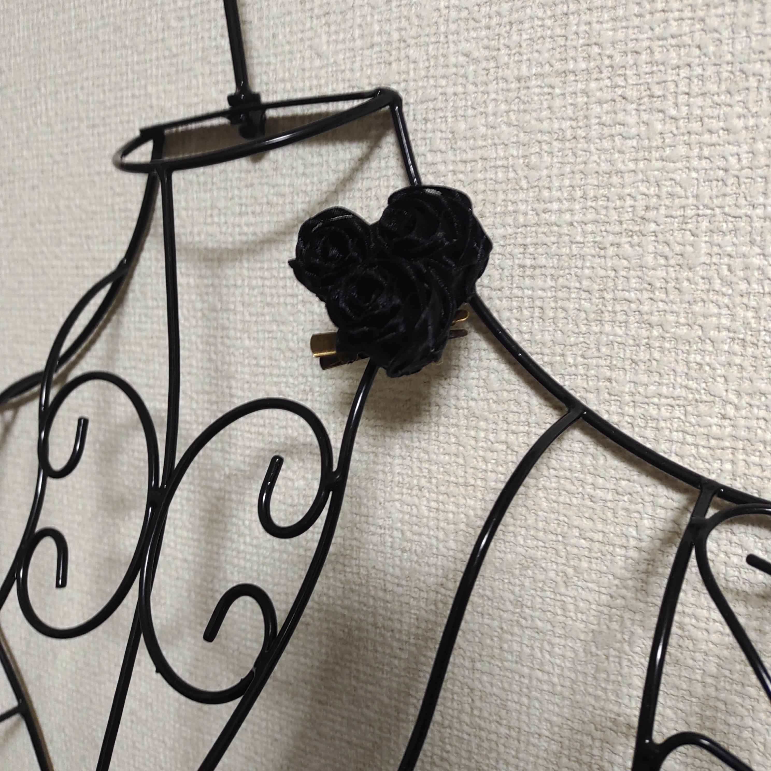 【プチコサージュ:2wayクリップ&ブローチ】ブラックローズ