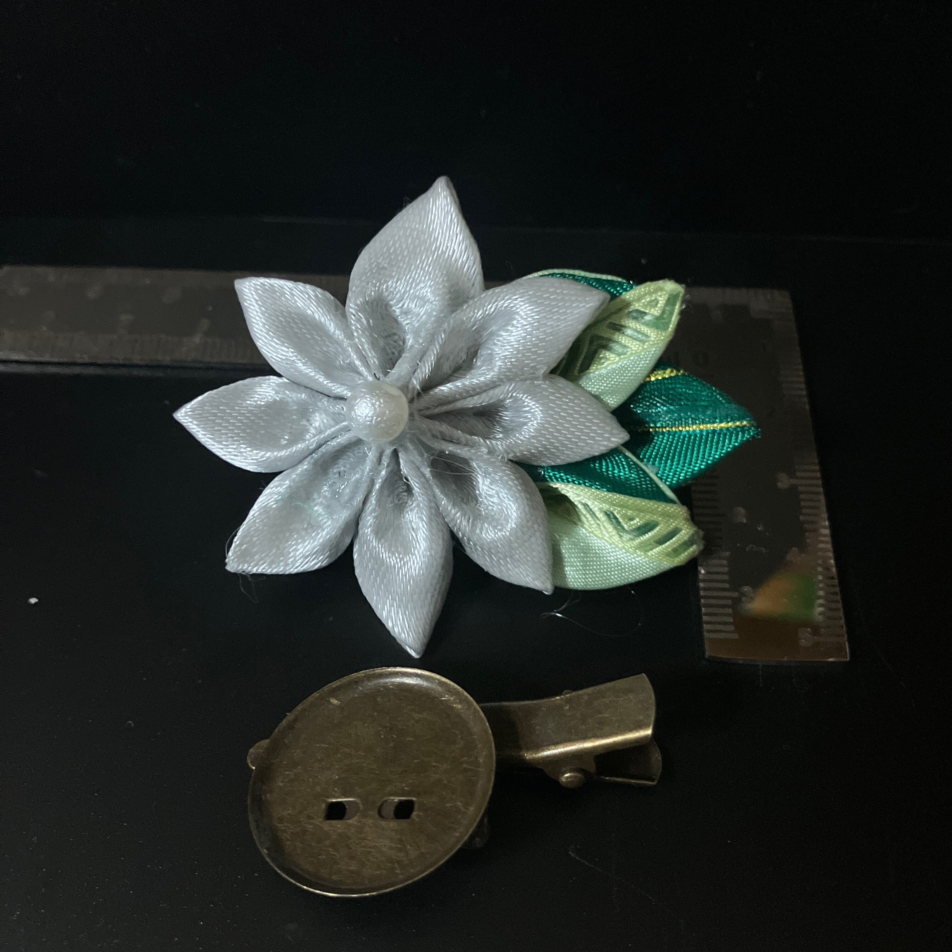 ■シルバーグレーのプチエトワールにコットンパールとリーフを添えて。.✽.。