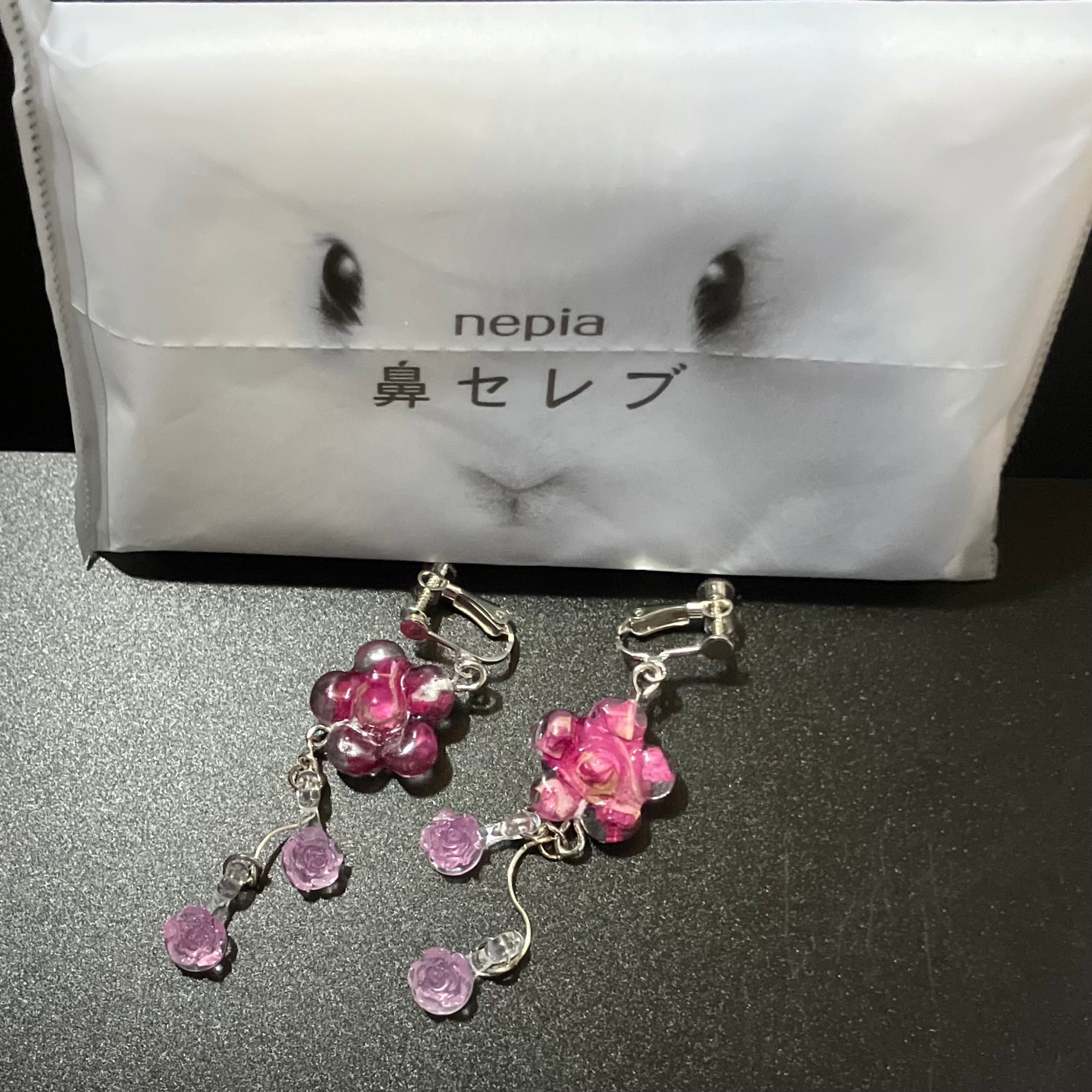 ☆再販【レジン・イヤリング】ミニバラと二粒のレジン