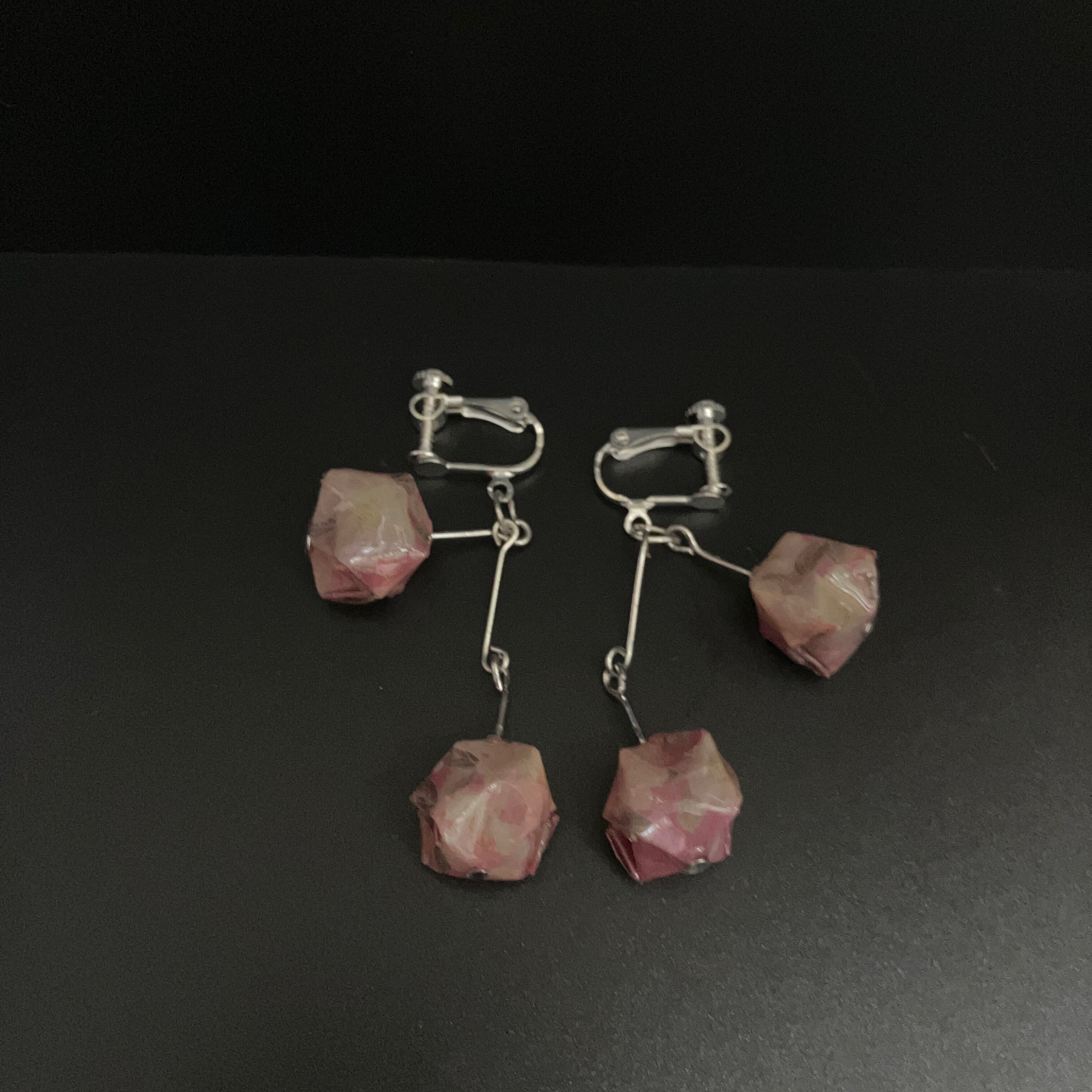 【イヤリング】和柄の折紙CUBE:ローズピンク