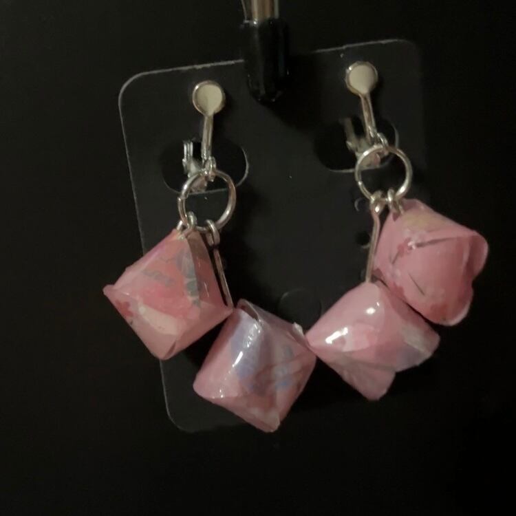 【イヤリング】和柄の折紙COCO:ピンク