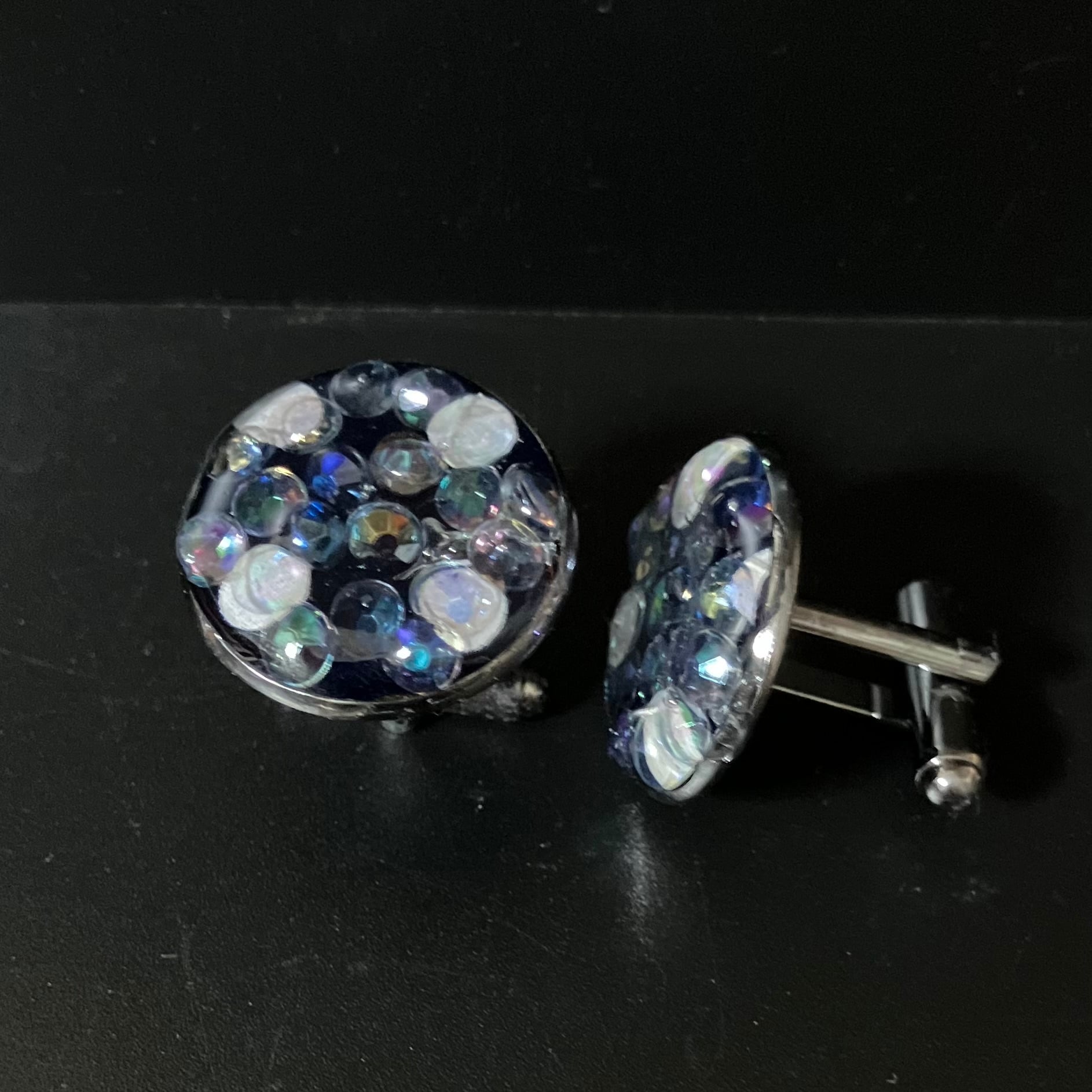 ■光の当たり具合で彩りが変化する華やかなカフスボタンに。.✽.。