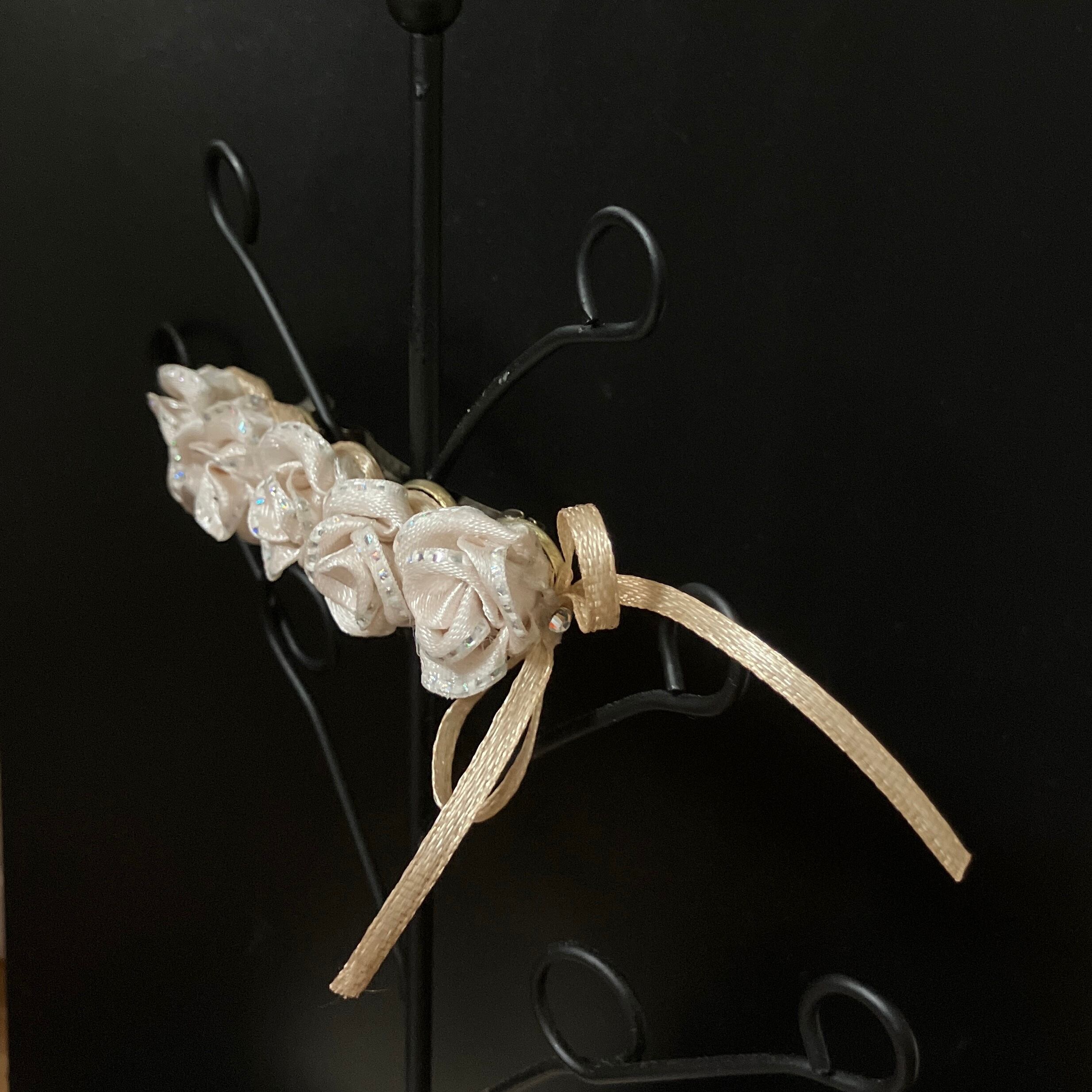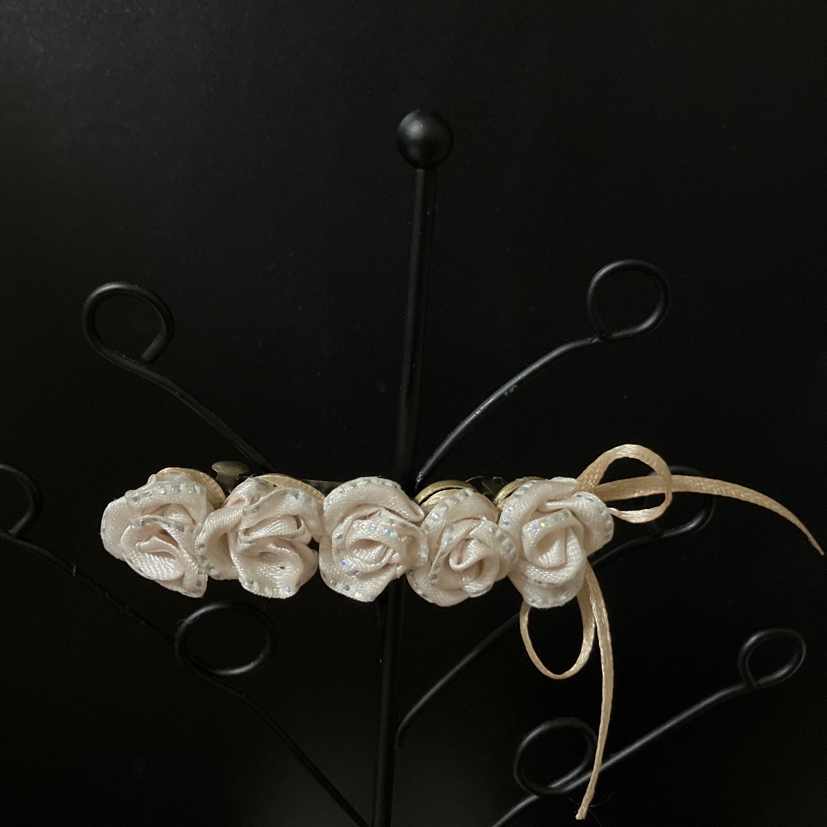 リボンフラワーのローズを並べたバレッタ。.✽.。