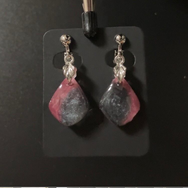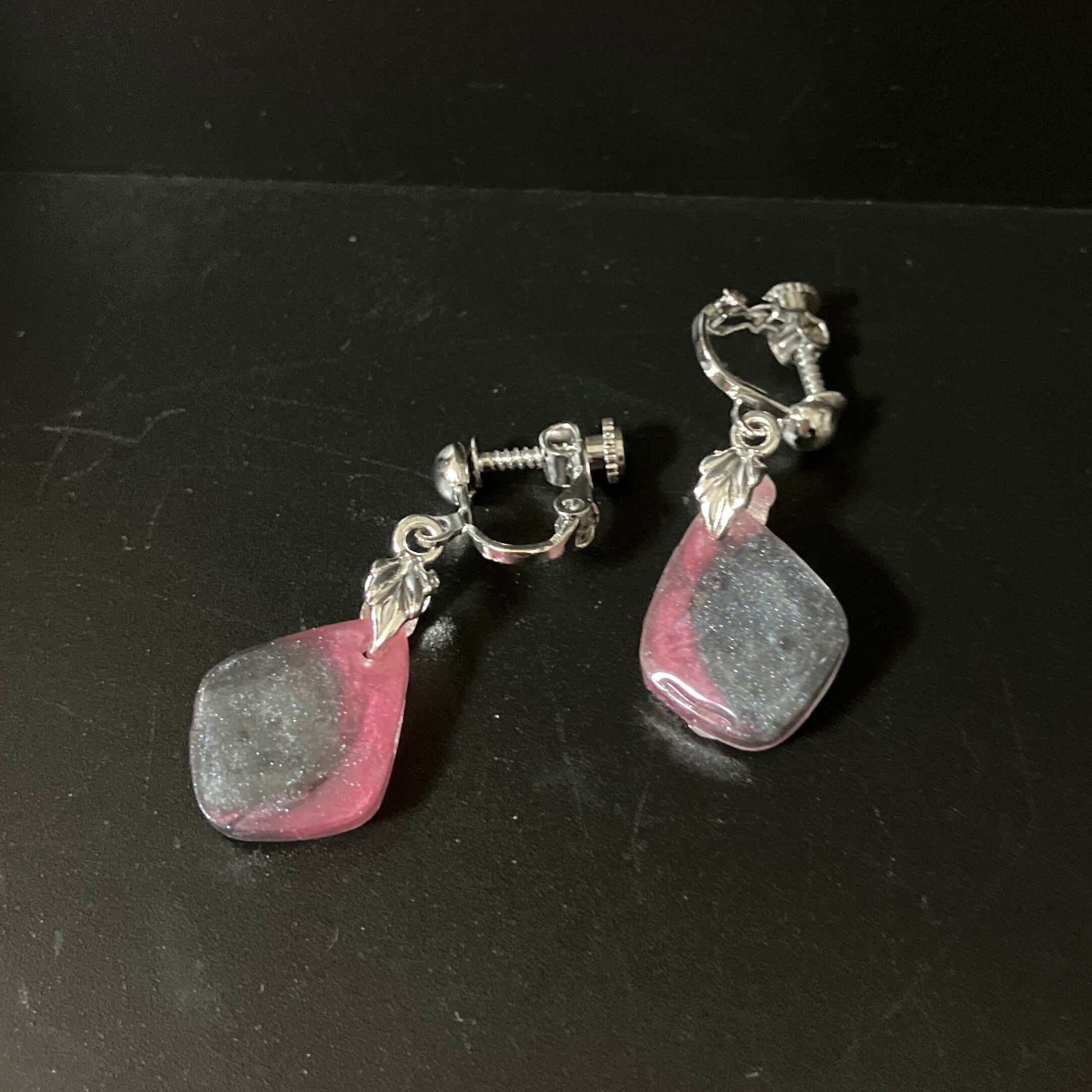 【バイカラー:イヤリング】ダイヤモンドシェイプ:グレー&ピンク