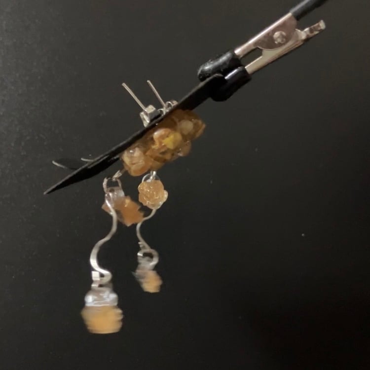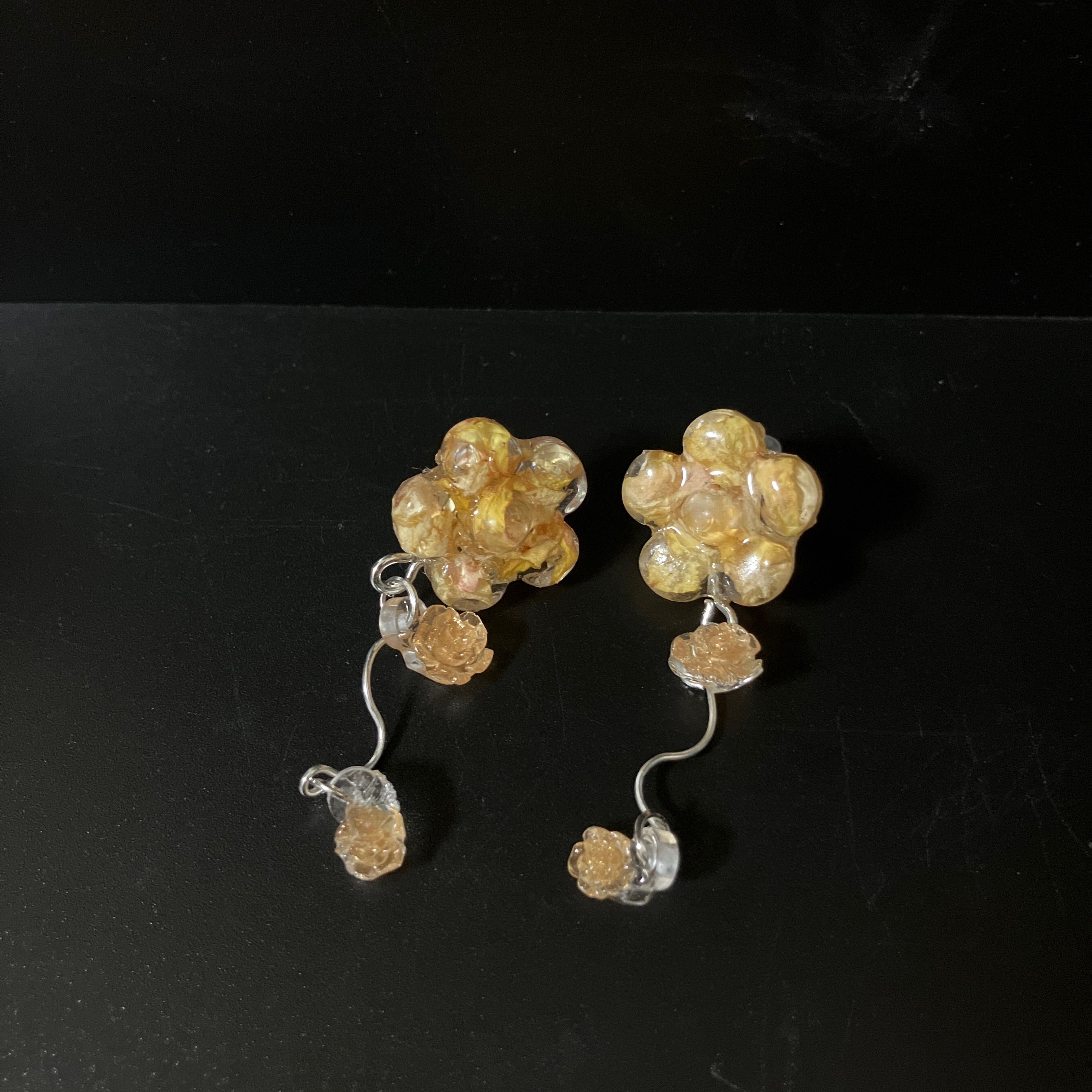 【レジン・ピアス】ミニバラと二粒のレジン:黄色