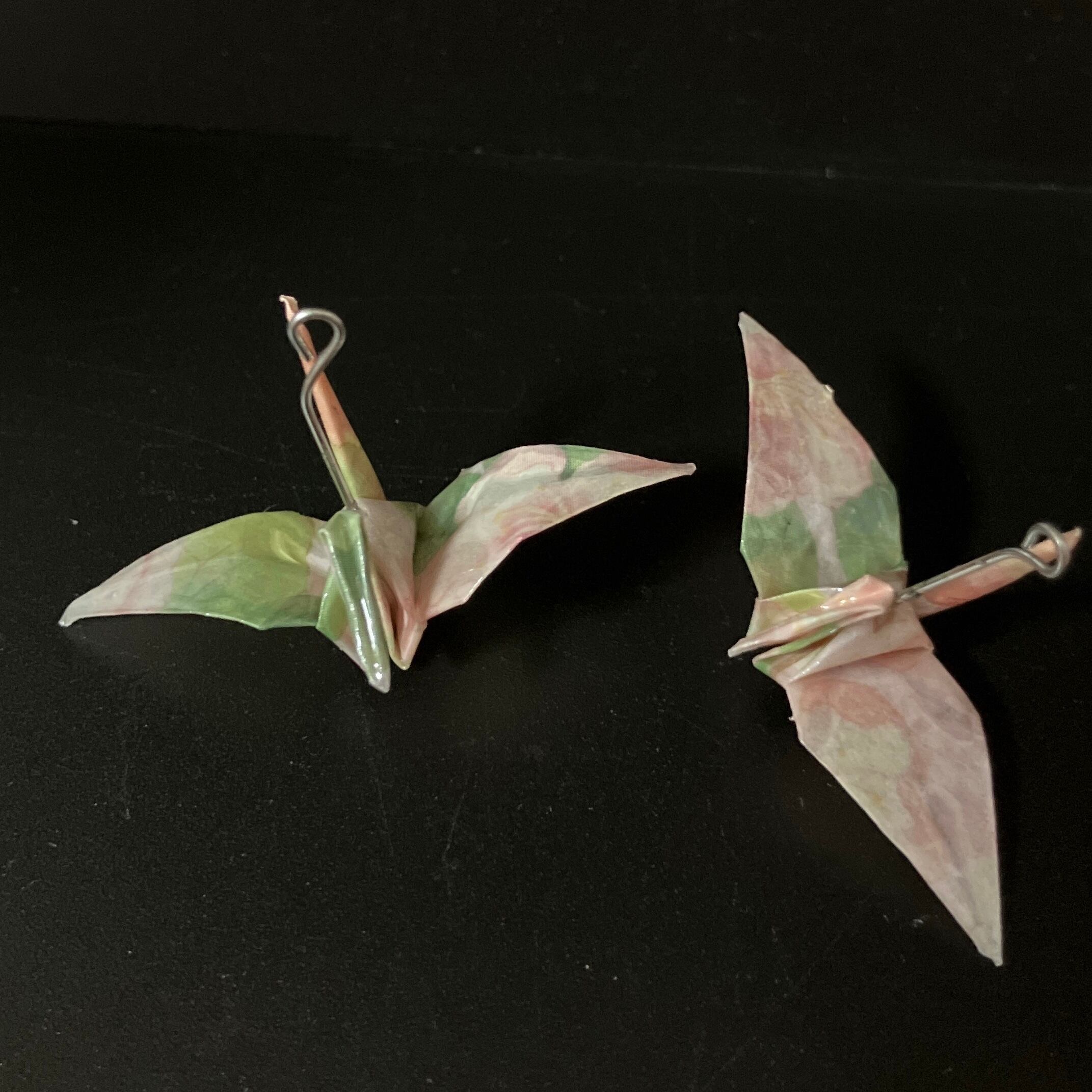 ■Fresh Breeze柄の折鶴をイヤリングに(ピアス変更可)。.✽.。