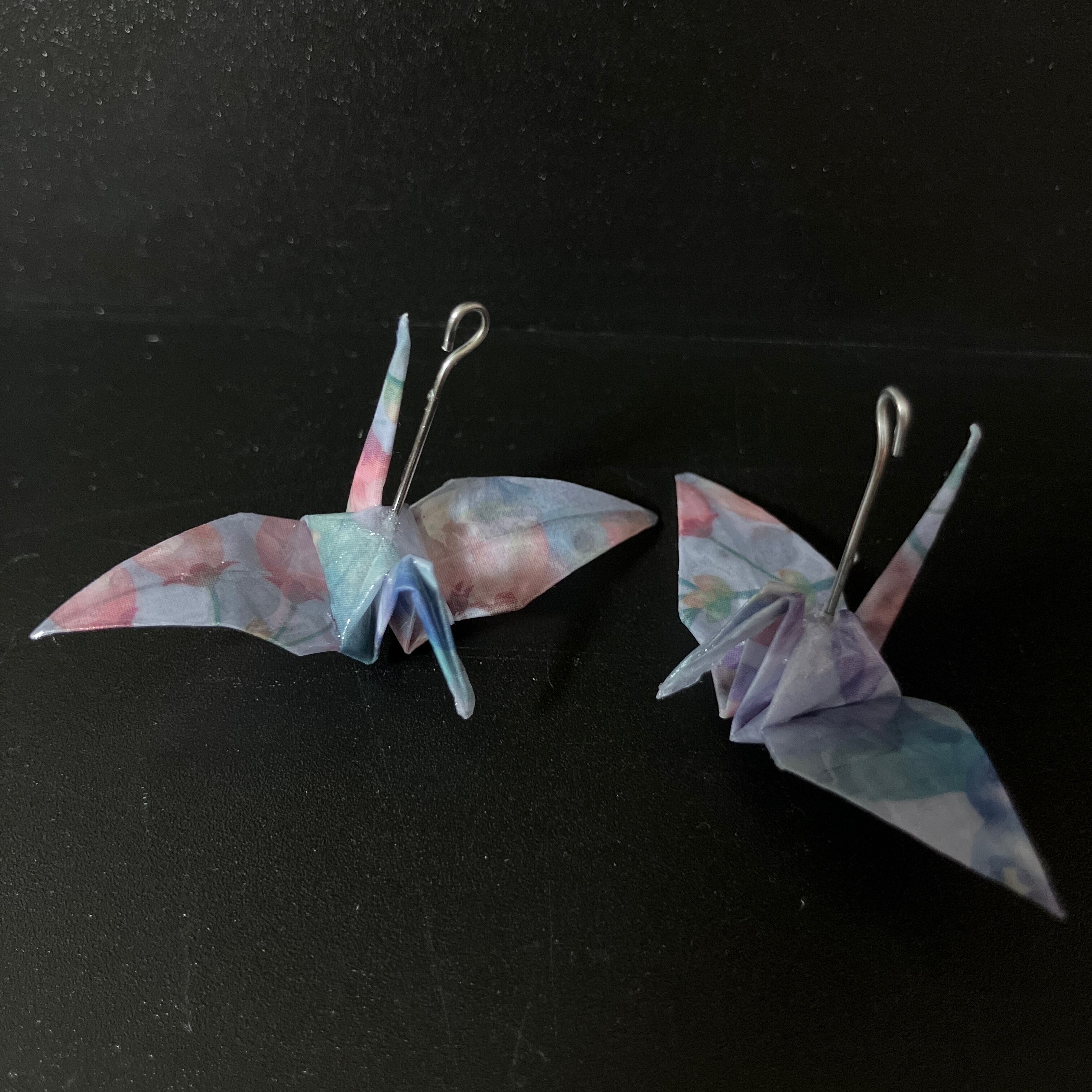 ■Fresh Breeze柄の折鶴をイヤリングに(ピアス変更可)。.✽.。